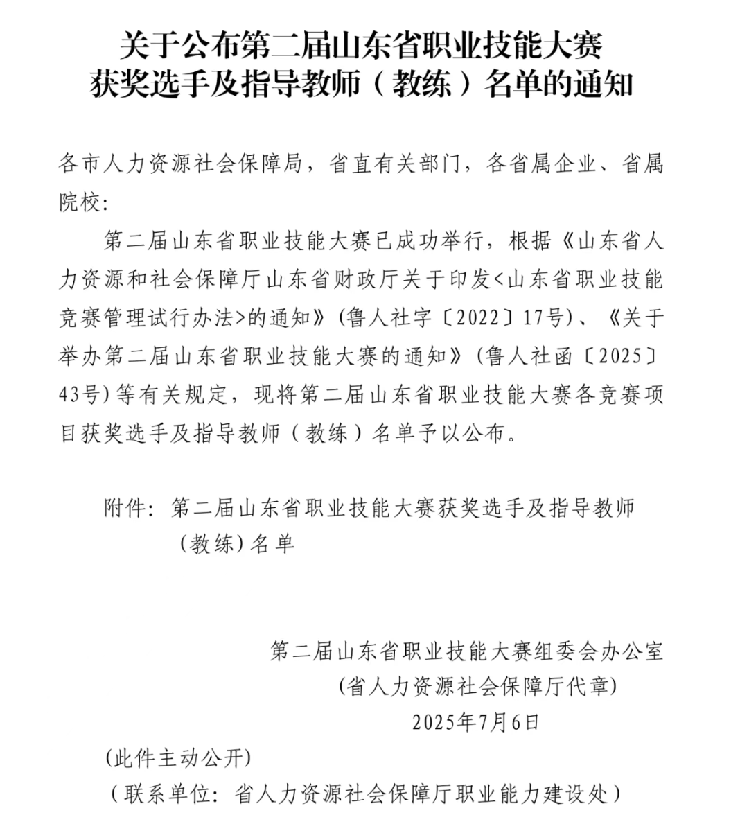 公司职工陈楼升荣获第二届山东省职业技能大赛银牌